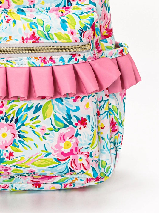 Green/Pink Floral Ruffle Backpack